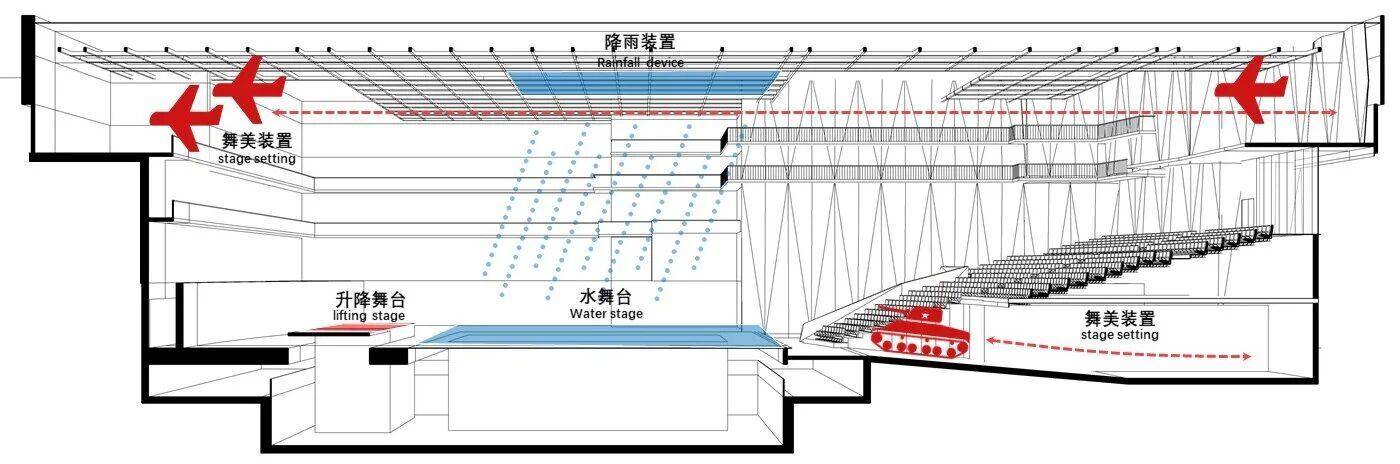 该项目定位为“演艺剧场”而非传统多功能剧场,设计目标是用空间叙事传承长征精神并服务于一出大型主题演出。
