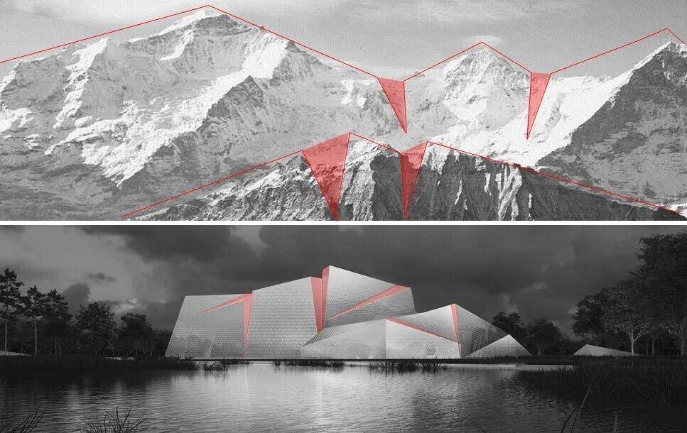 设计之初,团队就明确了两大核心:一是呼应地域环境,二是还原红色叙事。团队以 “雪山” 为设计起点,让建筑形态呼应西岭雪山的自然轮廓,同时暗合红军长征翻越雪山的艰苦卓绝,让建筑本身成为红色文化的载体。