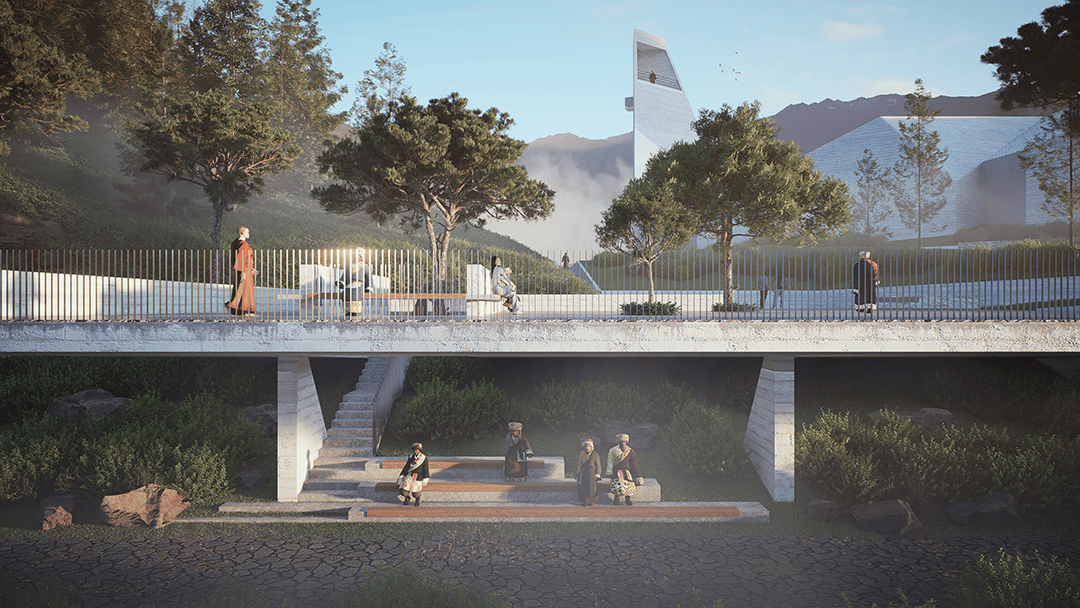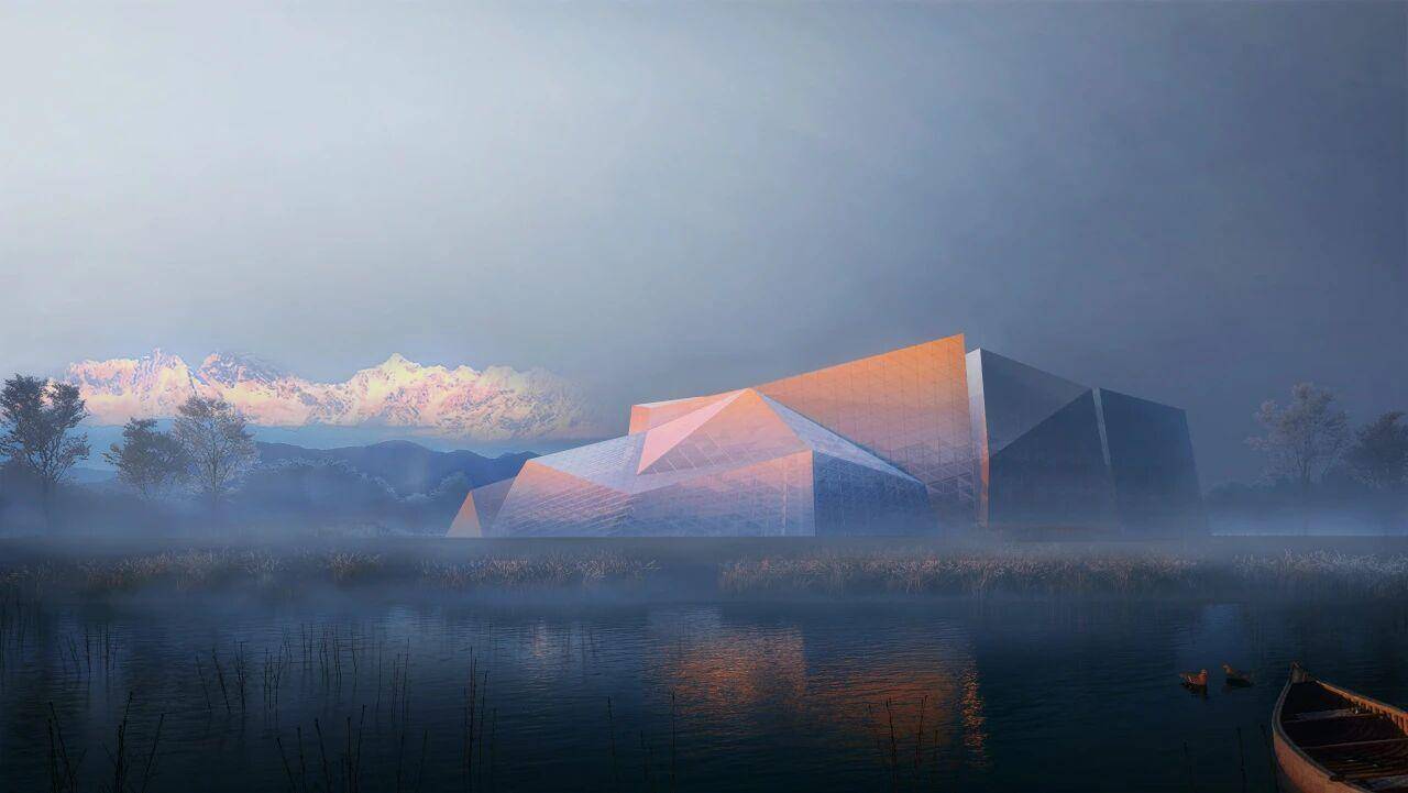 依神山脊线而建的甲扎尔甲山洞窟壁画博物馆,是藏羌文化交融地带的项目。团队历经一年多时间打磨数套设计方案,最终的现代风格设计获得文物部门青睐。